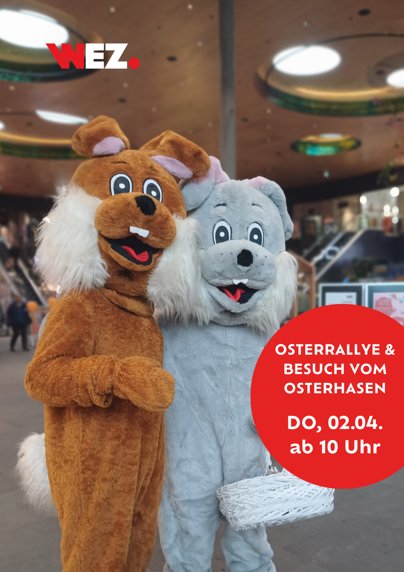 Bei unserer Osterrallye können kleine Entdecker quer durch das WEZ auf spannende Suche gehen. An verschiedenen Stationen wird wieder was versteckt sein. Wer alle Hinweise sammelt, darf sich am Ende über eine kleine Überraschung freuen!